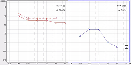 <span style="font-size:16px;"> 純音聽閾測試是聽力學所有測試項目中最基本的一項內容,包括氣導(AC)、骨導(BC)、最舒適閾(MCL)與不舒適閾(UCL)測試。測試結果能夠直接反映患者雙耳的聽力損失程度、性質與動態范圍,還能夠間接反映患者的患病位置、病因與助聽后效果。</span></p><p><span style="font-size:16px;"> 一般地,整個檢查控制在10分鐘左右,既能全面做完檢查,又不至患者疲憊而影響主觀反應。</span></p><p><span style="font-size:16px;"> 純音聽閾測試是最考驗聽力學工作者實際工作能力的一項基本內容:</span></p><p><span style="font-size:16px;"> 1、若患者曾長期暴露于噪聲中,且無其它致聾因素,很可能在3 kHz或6 kHz出現明顯的下降,聽力曲線呈現“V”字形,所以除了常規的倍頻程頻率外,還要加測這兩個頻率,否則就犧牲了多通道助聽器的意義;</span></p><p><span style="font-size:16px;"> 除了有過噪聲接觸史的患者需要加測半倍頻程外,涉及聲場助聽聽閾評估、賠償等情況都需要加測半倍頻程。</span></p><p><span style="font-size:16px;"> 耳鳴困擾的患者,注意避免與耳鳴聲類似的純音,若還用純音作為刺激聲,患者就會分辨不清,出現假陽性或假陰性。所以,測試者要換成囀音,既有別于耳鳴聲,又具有頻率特異性。</span></p><p><span style="font-size:16px;"> 2、不舒適閾反映患者對大聲的忍耐力,不舒適閾與氣導的差值能顯示患者的動態范圍,指導驗配師調節助聽器的最大輸出。</span></p><p><span style="font-size:16px;"> 不舒適閾測試頻率是否越多越好呢?非也。測得頻率過多,一會引起患者疲勞或不適,二是沒必要,大多數助聽器的最大輸出是一個整體,不能像調增益和壓縮那樣分通道,所以測多了并無好處,一般測0.5、1、2、4 kHz。</span></p><p><span style="font-size:16px;"> 3、如果兩側聽力有明顯差異,此時就要準備好掩蔽了,分為氣導掩蔽與骨導掩蔽。</span></p><p><span style="font-size:16px;"> (1)氣導掩蔽的判斷有兩個原則,只要符合其中一個原則,就需要重新測差耳氣導。具體做法是:</span></p><p><span style="font-size:16px;"> 測試完雙耳氣導,若發現某一頻率差耳氣導閾值比好耳氣導閾值多40 dB以上就要懷疑有可能是好耳偷聽的,需要給好耳氣導加掩蔽聲;</span></p><p><span style="font-size:16px;"> 測試完雙耳氣導與好耳骨導,若發現某一頻率差耳氣導閾值比好耳骨導閾值多40 dB以上就要懷疑有可能是好耳偷聽的,需要給好耳氣導加掩蔽聲。</span></p><p><span style="font-size:16px;"> 下面為未掩蔽的聽力圖:</span></p><center><span style="font-size:16px;"><img alt="" src="/upfiles/201810160133207570.png" width="440" height="220" /></span></center><p></p><p><span style="font-size:16px;"> 下圖為掩蔽后的左耳真實氣導值:</span></p><center><span style="font-size:16px;"><img alt="" src="/upfiles/201810160133289538.png" width="440" height="220" /></span></center><p></p><p><span style="font-size:16px;"> (2)骨導掩蔽的判斷原則:</span></p><p><span style="font-size:16px;"> 測試完雙耳氣導與好耳骨導,若發現某一頻率差耳氣導閾值比好耳骨導閾值大于等于15 dB就必須予以掩蔽,重測骨導。下圖為右耳氣導加掩蔽后左耳骨導的真實值:</span></p><center><span style="font-size:16px;"><img alt="" src="/upfiles/201810160133368026.png" width="440" height="220" /></span></center><p></p><p><span style="font-size:16px;"> 注意:</span></p><p><span style="font-size:16px;"> 1)掩蔽的規則要按順序適用;</span></p><p><span style="font-size:16px;"> 2)各頻率根據規則決定是否需要加掩蔽;</span></p><p><span style="font-size:16px;"> 3)很少需要掩蔽所有頻率,通常氣導掩蔽頻率不應超三個,骨導掩蔽頻率不應超兩個,否則受試者會疲憊不堪。</span></p><p><span style="font-size:16px;"> 醫院測聽的主要目的是診斷和鑒別聽力損失的性質和程度,驗配中心的主要目的是盡可能地幫助患者選擇并調試好助聽器。</span></p><p><span style="font-size:16px;"> 更多詳情請登錄m.ziputi.cn</span></p>" />