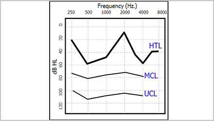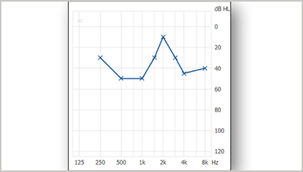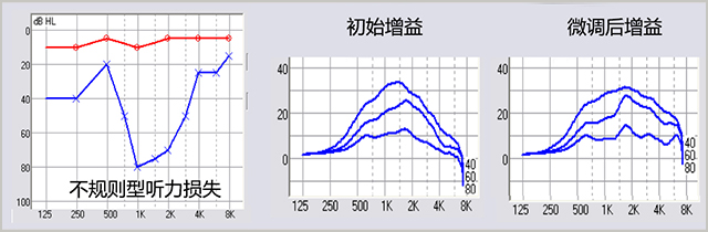 <span style="font-size:16px;"> 我們今天分享的是處理不規則型聽力損失的驗配技巧。</span></p><p><span style="font-size:16px;"> 什么是不規則型聽力損失?</span></p><p><span style="font-size:16px;"> 不規則型聽力損失,是指聽力圖上曲線彎彎曲曲,毫無規則的聽力損失,如下圖。</span></p><center><span style="font-size:16px;"><img alt="" src="/upfiles/201808290214166730.png" width="440" height="250" /></span></center><p></p><p><span style="font-size:16px;"> 它屬于復雜案例的一種,通常,我們在驗配過程中需要耗費大量精力,反反復復調試可能也不一定效果好。不規則型聽力損失在日常的驗配中不如陡降型聽力損失常見,可查閱的臨床試驗和深入研究都很少。</span></p><p><span style="font-size:16px;"> 今天介紹的調試技巧主要是日常驗配的經驗,先來看看調試的基礎知識點。</span></p><p><span style="font-size:16px;"> 每個調試技巧都有它特有的理論基礎,了解了這個基礎,我們就會發現,調試很簡單,這也再一次體現了打好基礎的重要性。</span></p><p><span style="font-size:16px;"> 根據研究表明,不規則型聽力損失的弱聽人士,其MCL(舒適閾)曲線與UCL(不舒適閾)曲線通常比聽閾曲線更加平坦,如下圖所示為HTL(聽閾)曲線、MCL曲線和UCL曲線。</span></p><center><span style="font-size:16px;"><img alt="" src="/upfiles/201808290214226016.png" width="440" height="250" /></span></center><p></p><p><span style="font-size:16px;"> 這個知識點不僅僅適用于不規則型聽力損失,絕大部分聽力損失都是如此,包括陡降型聽力損失、上升型聽力損失等等。引起這種情況的原因,我們可以追溯到一些基本的心理聲學原理。</span></p><p><span style="font-size:16px;"> 首先我們先來看看什么是舒適閾MCL與不適閾UCL,它們有個共同的特性就是都與響度有關。通俗來說,MCL是我們感覺到聲音聽起來,既清楚又舒服的響度;UCL則是我們聽到聲音覺得震耳、難受時的響度。</span></p><p><span style="font-size:16px;"> 接下來我們再來看一看等響曲線。等響曲線簡單來說,是指聽力正常者感覺響度相同時的純音聲壓級與頻率關系的曲線。</span></p><p><span style="font-size:16px;"> 下圖為等響曲線圖,橫坐標是頻率,縱坐標是聲壓級。</span></p><center><span style="font-size:16px;"><img alt="" src="/upfiles/201808290214275568.png" width="440" height="250" /></span></center><p></p><p><span style="font-size:16px;"> 我們看到,圖中每條曲線上的點都對應不同頻率和不同聲壓級,但是,我們人耳感覺到的響度是一樣的。每條曲線上注有一個數字,單位是方,意思是該條曲線上的任一點響度都一樣。</span></p><p><span style="font-size:16px;"> 從上圖中,我們可以發現,響度越大,即圖中越靠上方的等響曲線,曲線越平坦。</span></p><p><span style="font-size:16px;"> 換句話說,在高響度的情況下,不同頻率的聲音在相同聲壓級時聽上去一樣響。這就是我們MCL曲線和UCL曲線比HTL曲線都平坦的原因之一。這個知識點是后面調試技巧的基礎。</span></p><p><span style="font-size:16px;"> 接下來我們說驗配技巧:</span></p><p><span style="font-size:16px;"> 1、驗配處方公式的選擇</span></p><p><span style="font-size:16px;"> 這里我們主要說說常用的兩大經典公式,一個是DSL i/o公式(或DSL v5,后文只用DSL i/o表示),一個是NAL-NL2公式。</span></p><p><span style="font-size:16px;"> DSL i/o 是一種基于閾值考慮的公式,它將聽閾HTL與不舒適閾UCL(如未測量則自動估算)都考慮進去,并試圖將所有的聲音都“安排在”弱聽人士剩余的聽覺動態范圍內,保證響度的正常化。</span></p><p><span style="font-size:16px;"> 也正因此,你可能會發現,它所提供的各頻率增益之間差別較大,可能這里只有幾分貝的增益,附近頻率卻有幾十分貝的增益。</span></p><p><span style="font-size:16px;"> NAL-NL2則與DSL不同,它會預測患者的響度變化,考慮到MCL曲線趨于平坦,于是乎,最后的增益也是比較平坦的。基于此,為保證其增益相對平衡,甚至有些地方會達不到聽力損失所需增益,或超出所需增益。兩公式的增益補償如下圖所示。</span></p><center><span style="font-size:16px;"><img alt="" src="/upfiles/201808290214323691.png" width="440" height="250" /></span></center><p></p><p><span style="font-size:16px;"> 大量的驗配結果發現,NAL -NL2 公式在處理不規則聽力損失時,有更好的效果。</span></p><p><span style="font-size:16px;"> 2、增益微調</span></p><p><span style="font-size:16px;"> 在使用NAL-NL2公式后,進行進一步微調時,我們建議可以適當減少500Hz-1000Hz的增益,適當增加2000Hz處的增益。</span></p><p><span style="font-size:16px;"> 這是考慮到2000Hz頻率附近的有用信息非常多,而低頻信息較少,適當增加2000Hz處的增益可以讓弱聽人士聽到更多有用信息。 微調后,我們發現,弱聽人士并不會覺得中高頻增益太高,而低頻增益太少,并且也沒有出現一些與之相關的不適反應。</span></p><p><span style="font-size:16px;"> 除了如上特定頻率的增益微調,我們建議適當跳出不規則型聽力損失的聽力圖,把增益頻響曲線調得平滑些,如下圖所示,效果會更好。</span></p><center><span style="font-size:16px;"><img alt="" src="/upfiles/201808290214375053.png" width="640" height="210" /></span></center><p></p><p><span style="font-size:16px;"> 哪怕對照著聽力圖的話,在某些頻率處的增益好像過高或過低也沒關系。沒錯,對于不規則型聽力損失來說,“彎曲”對“平滑”才是“配”。</span></p><p><span style="font-size:16px;"> 調試技巧總結</span></p><p><span style="font-size:16px;"> 處方公式:DSL和NAL兩