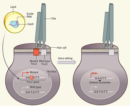 著名鋼琴家貝多芬在32歲時聽力完全喪失,其傷害不言而喻,他在留給其兄弟的遺囑中寫道,“正如落葉凋零,我的生命也已變得空洞?!?lt;/p><p> 盡管貝多芬聽力喪失的原因未知,但很多案例顯示聽力障礙實際都和遺傳DNA突變有關,而目前已知的和聽力障礙相關的基因有近100個。但迄今為止,幾乎沒有任何治療方法可以減緩或者逆轉聽力障礙。貝多芬逝世兩個世紀后的今天,阻止遺傳因素導致聽力障礙的技術離實現臨床已越來越近。</p><p> 哈佛大學醫學院耳鼻喉科副教授Zheng-Yi Chen和哈佛大學化學與化學生物學教授、美國博德研究所核心成員David R. Liu共同主導的一項研究在線發表在在國際著名期刊《自然》(Nature),該團隊用基因編輯技術治療TMC1突變“貝多芬小鼠”的遺傳性聽力障礙,并取得良好效果。</p><p> 內耳是聲音感知的最重要部位,其中內耳毛細胞又是人類聽到聲音的關鍵。其中,TMC1是內耳毛細胞中機械力傳導的重要組成部分,TMC1蛋白在內耳毛細胞的纖毛上形成通道,當聲波引起纖毛運動時這種通道就會打開,隨后鈣離子進入細胞生成電信號,電信號傳遞到大腦后形成聽覺。</p><p> TMC1發生了一種顯性負性錯義突變后,會導致內耳毛細胞單通道電流水平和鈣滲透率降低,進一步導致感音神經性語后聾(語言形成后出現聽力障礙)。通常,TMC1顯性突變患者在10-15歲時會開始逐漸變聾。</p><p> TMC1顯性突變即意味著,一對等位基因中只有一個發生突變就會導致功能喪失,從而致聾。這也就使得修復顯性突變成了一項精細的任務:必須使突變基因失活,同時還要保留野生型基因。這一對基因的差別只在于其中一個核苷酸的不同。突變的TMC1在原本野生型一個胸腺嘧啶核苷酸T的位置變成了腺嘌呤核苷酸A。</p><p> </p><center><img alt="" src="/upfiles/201903210248378799.png" width="440" height="360" /></center><p></p><p style="text-align: center;"> 基因編輯過程示意圖</p><p> Chen和Liu團隊啟用的是熱門的CRISPR–Cas基因編輯技術。研究團隊將含有Cas9和RNA的脂滴注入新生TMC1貝多芬小鼠的內耳,這種脂滴能和細胞隨后融合?;蚓庉嫼笸蛔兓蛑邢汆堰屎塑账酇被敲除,從而使該基因失活。但同時保留了野生型基因,保證正常聽力功能實現。</p><p> 研究團隊評估得出,基因編輯過的小鼠中內耳毛細胞的存活率更高、聽腦干反應閾值更低。此外,聽覺反射也出現改善,基因編輯過的成年貝多芬小鼠在聽到突發噪音時會表現出驚嚇,然而未經基因編輯的小鼠對此毫無反應。</p><p> 論文最后指出,這一治療途徑在治療和內耳毛細胞功能障礙有關的常染色體顯性遺傳聽力障礙方面具備潛力,也為反義寡核苷酸療法和RNA干擾療法提供了補充策略。</p><p> 更多詳情請登錄聽覺有道助聽器m.ziputi.cn</p>" />