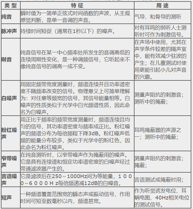 1. 描述聲波的常見物理量</p><p> 1)頻率:單位時間內物體振動的次數(次/秒),用Hz表示;</p><p> 2)強度和振幅:振幅是描述物體振動時傳遞能量的大小,單位是分貝dB;</p><p> 3)分貝:人耳的聽聲范圍太大,引起聽閾的最小聲強與引起痛覺的最小聲強相差近100萬倍,不易計數,因此以某一絕對聲強為基準(20μPa),將聲強的絕對值轉換為與該基準聲強的比值(聲強的級),再取以10為底的對數,最終計數單位變成了貝爾(Bell),為了更細的分級,現在普遍采用1/10B,即分貝(dB)為計數單位。</p><p> </p><center><img alt="" src="/upfiles/201906100126248309.png" width="423" height="154" /></center><p></p><p style="text-align: center;">音波示意圖</p><p style="text-align: left;"> 4)相位:指聲源相對于聽者的方向或位置,當頻率相同的聲音同時到達某點時,如果相位相同,其結果是使聲音顯得更響;當聲音一前一后分別到達時,相位出現部分抵消,其結果是使聲音顯得更輕,相位是確定聲源位置的依據;</p><p> 5)聲壓級(SPL):是用對數級的辦法來表示聲壓的相對大小,單位是dB SPL。計算公式為Lp(SPL)=20lg(P/P0),P0為基準聲壓,在空氣中取人耳1000Hz處能聽到的最小聲壓20μPa。</p><p> 2. 聽力學中常用的聲音信號</p><p> 下列聲信號在聽力測試、聲場測試、助聽器檢測等過程中經常被用到的。</p><p> </p><center><img alt="" src="/upfiles/201906100126317113.png" width="554" height="600" /></center><p></p><p> 更多詳情請登錄聽覺有道助聽器m.ziputi.cn</p>" />