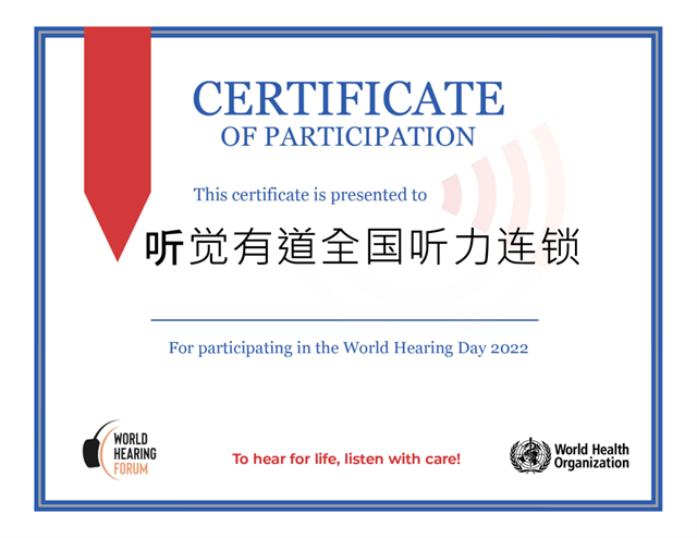 5月10日,聽(tīng)覺(jué)有道獲世界衛(wèi)生組織WHO授予榮譽(yù)證書(shū)。